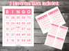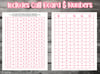Revitalize your game nights with our printable bingo digital download! Featuring 20 stylish pink cards, a sleek call board, bingo numbers, and 5 unique markers, this comprehensive set ensures a delightful and hassle-free bingo experience for all. Upgrade your entertainment with instant fun at your fingertips!