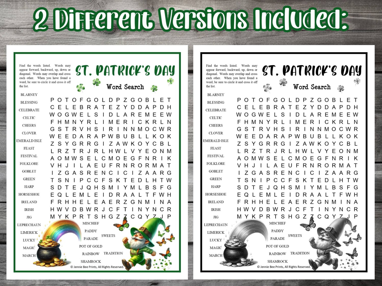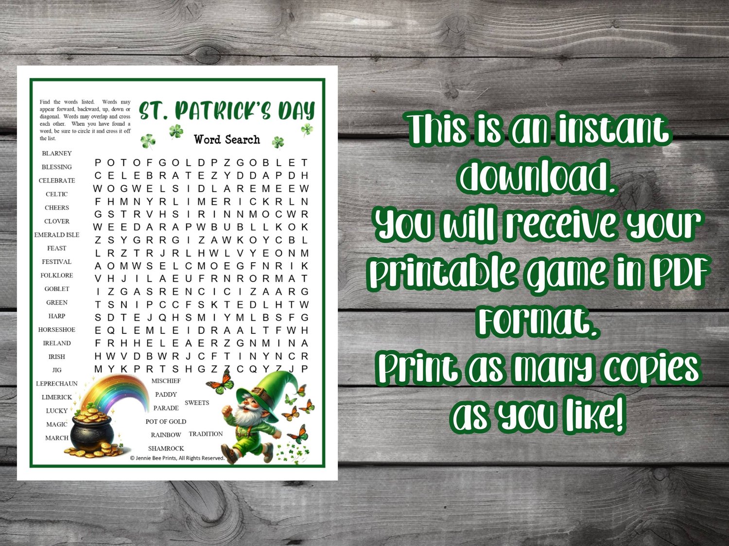 Embark on a search for shamrocks and leprechaun magic with my St. Patrick's Day word search puzzle. Packed with Irish charm, this whimsical puzzle is a delightful way to add a touch of luck and excitement to your festivities – perfect for solo enjoyment or friendly competition at any celebration!