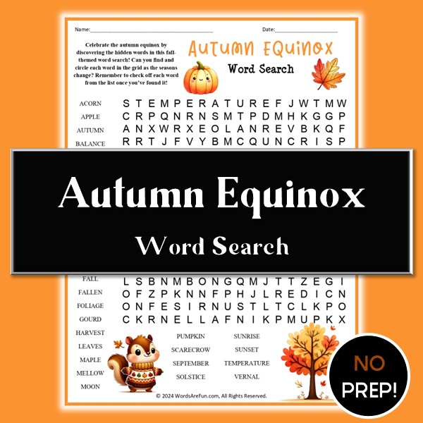 Autumn Equinox Word Search Puzzle | Fun Fall Activity for Kids, Classroom & Seasonal Learning (PDF)