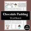 Chocolate Pudding Day printable, Dessert word search, Food-themed word search, Chocolate word search puzzle, Printable word search PDF, National Chocolate Pudding Day activity, Fun classroom activity, ELA dessert activity, Kids word search puzzle, Snack-themed worksheet, Summer learning printable, Chocolate pudding worksheet, PDF word search for kids, Printable holiday activity, Dessert day classroom printable