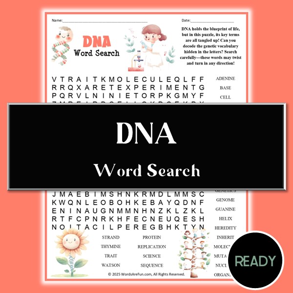 Celebrate DNA Day with this fun and educational DNA Word Search Puzzle! This printable activity includes 30 genetics-related vocabulary words like chromosome, gene, helix, mutation, and replication—perfect for reinforcing science concepts in a memorable way.