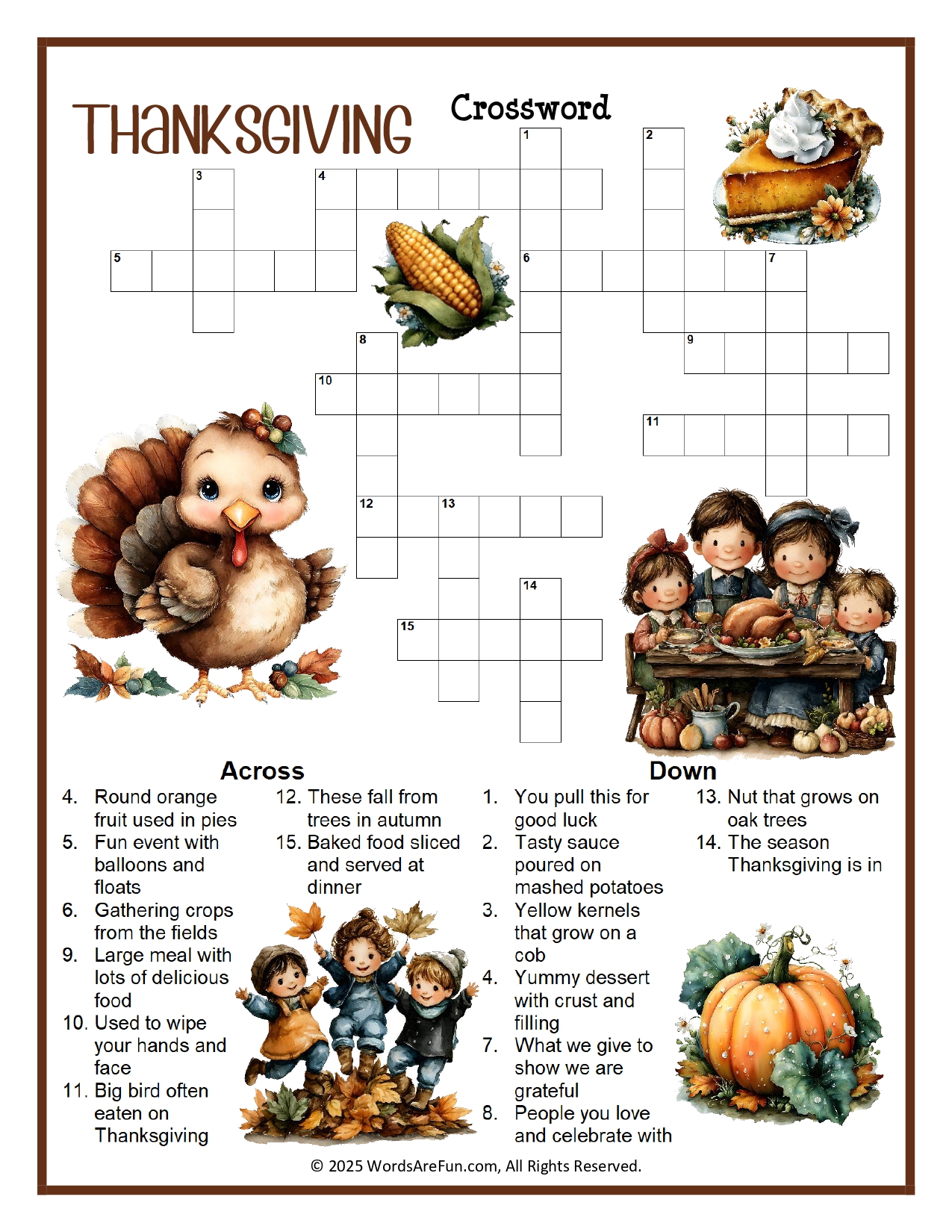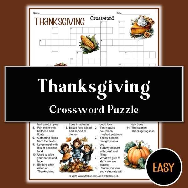 Easy Thanksgiving Crossword Puzzle for Kids | Fun Fall Holiday Printable Activity