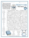 Frosty Fun Word Search Word List: Blanket, Blizzard, Boots, Cabin, Chill, Cocoa, Earmuffs, Fireplace, Frost, Frozen, Hat, Hot, Ice, Igloo, Mittens, Penguin, Pinecone, Polar, Scarf, Shovel, Skates, Sled, Sleigh, Snowball, Snowflake, Snowman, Snowy, Winter.