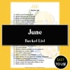 June bucket list printable, June bucket list ideas, June summer activities PDF, printable June goals, June quote printable, June family activities list, June bucket list for kids, June summer fun list, June activity planner, printable bucket list June, June checklist printable, June monthly goals PDF, June writing activity, June black and white bucket list, June color printable list