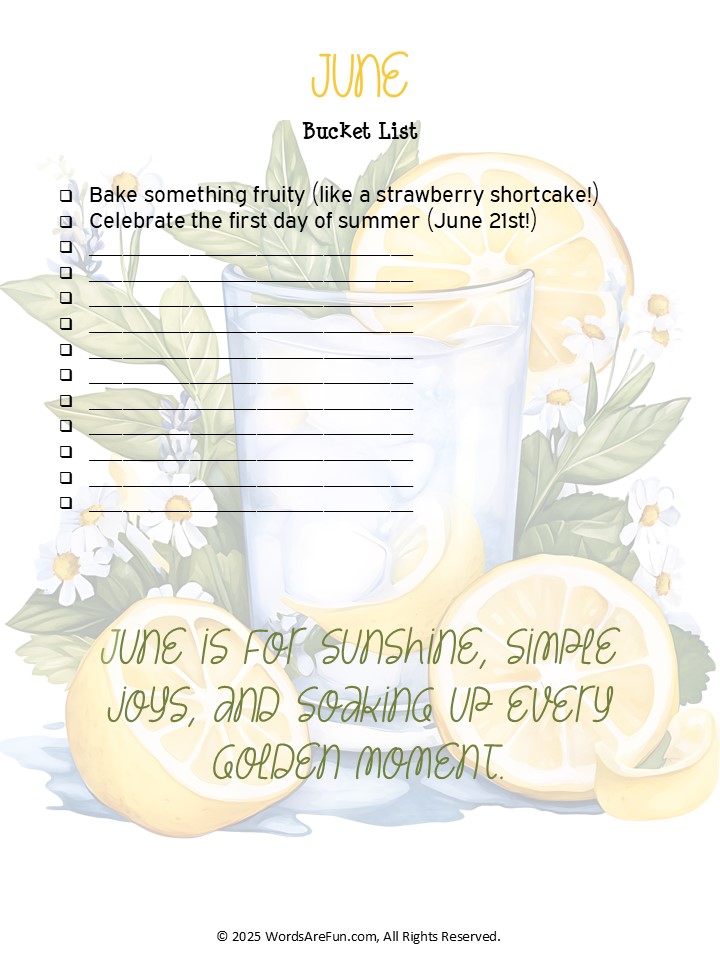 June Bucket List Printable – 30 Fun Summer Ideas, Quote & Custom List PDF