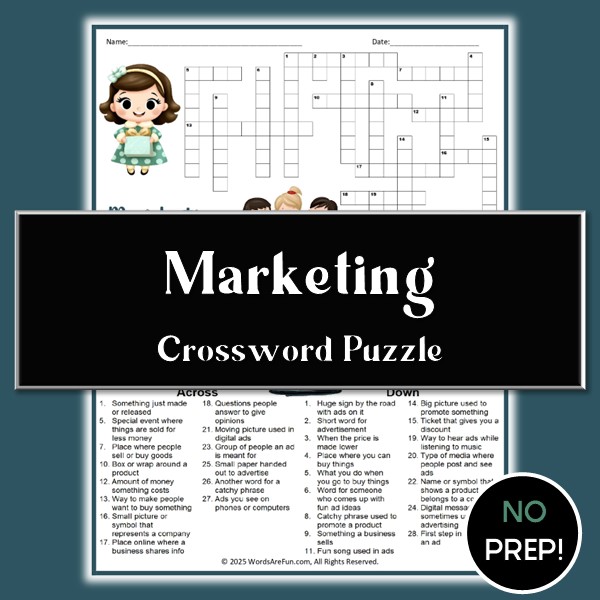 - Marketing Crossword Puzzle – test your knowledge of brands, slogans, promotions, and digital marketing terms.