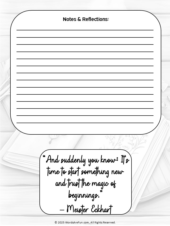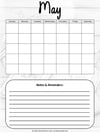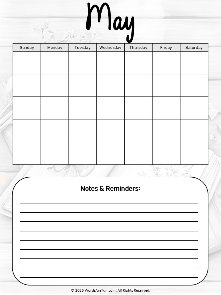 Get inspired this spring with this May Journal Prompts Printable PDF! It includes 5 creative writing prompts, 2 positive affirmations, 1 motivational quote, and dedicated space for notes and reflections. An undated May calendar and notes & reminder section help you stay organized while boosting creativity and mindfulness. Both color and black & white versions are included in this non-editable PDF for flexible use. Perfect for personal journaling, classrooms, or homeschool activities.