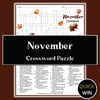 November crossword, fall crossword puzzle, Thanksgiving activity, autumn activity, cozy November puzzle, seasonal puzzle, Thanksgiving crossword, fall word puzzle, November PDF printable, non-editable crossword, autumn word game, November activities for adults, November activities for kids, printable crossword, seasonal brain teaser, fall homeschool activity, Thanksgiving printable, fall classroom activity, seasonal family fun, cozy fall activities, Payhip printable, holiday crossword, fall-themed puzzle, November word game, Thanksgiving brain game