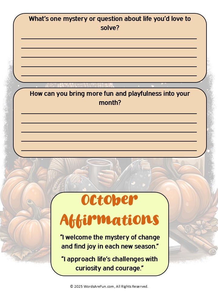 October Journal Prompts Printable | Fall Writing PDF with Calendar & Affirmations