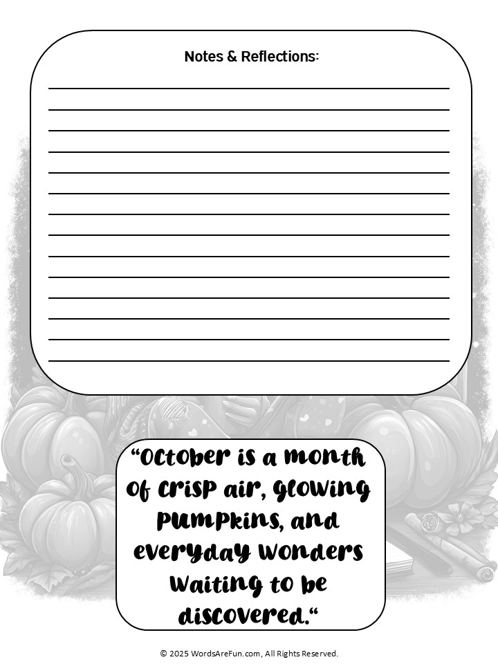 october journal prompts printable, fall writing activities pdf, autumn journal pages, october calendar printable, seasonal affirmations worksheet, mindfulness journal for october, teen journaling prompts pdf, planner inserts october printable, fall reflection pages, printable journal worksheets, october quote printable, seasonal writing resource, autumn themed planner pages, october notes and reminders, non editable pdf journal, black and white printable journaling, fall homeschool writing activity, autumn mental wellness printable, october creative writing prompts, october self reflection worksheet