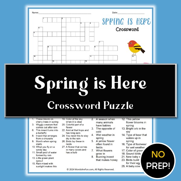 spring crossword puzzle, printable spring worksheet, spring vocabulary activity, fun spring puzzle for kids, elementary spring worksheet, no prep spring activity, seasonal classroom printable, spring educational activity, spring spelling worksheet, spring-themed crossword, homeschool spring worksheet, spring word puzzle, spring ELA resource, spring lesson printable, kids seasonal crossword