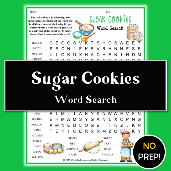 Bring a sprinkle of fun and learning to your kitchen or classroom today with this sugar cookie word search — a treat that’s educational and entertaining!