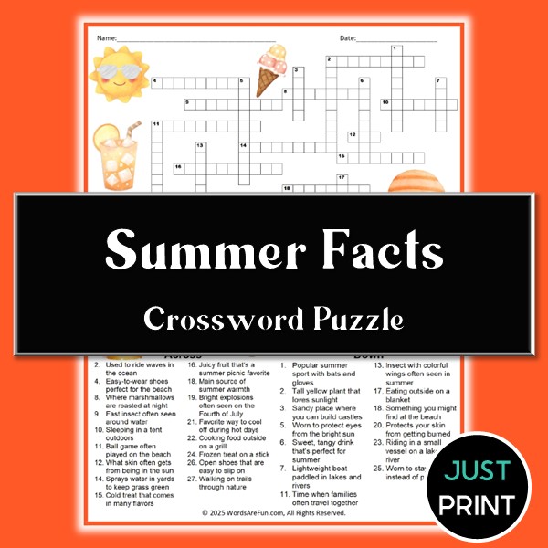 Summer Facts Crossword Puzzle Printable | Fun Summer Activity Worksheet PDF
