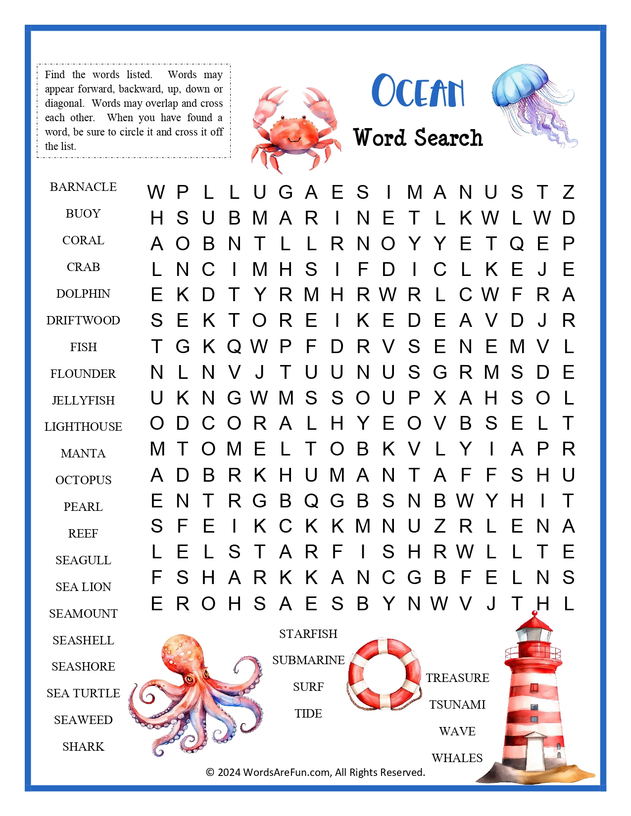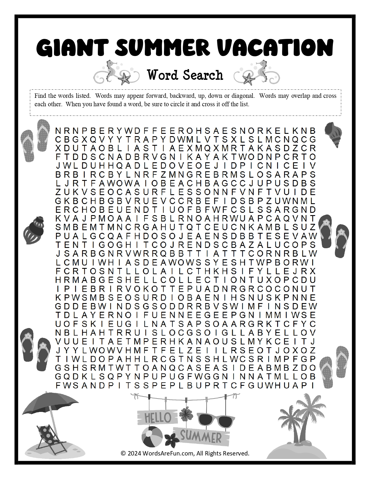 Puzzles included: Beach Day, End of the Year, Father’s Day, Flag Day, Giant Summer, Ice Cream Flavors, 4th of July, Last Day of School, Ocean, Summer Clothes, Summer Flowers, Summer Foods, Summer Vocabulary, Summer Word Search, Water Activities.