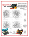 Typewriter Day printable, Typewriter word search, National Typewriter Day activity, Typing word search puzzle, Printable vintage puzzle, Homeschool word search, Classroom brain break, Educational word search PDF, Typing practice worksheet, Kids word puzzle activity, Typewriter-themed worksheet, Printable word search for students, History of writing activity, Typewriter Day for kids, Typewriter vocabulary puzzle