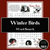 winter birds word search printable, bird word search for kids, winter animal worksheet, birdwatching activity printable, nature study word search PDF, science center activity winter, homeschool winter printable, bird names word search, winter literacy activity, printable word search for kids, no prep winter worksheet, elementary science activity, bird identification worksheet, seasonal classroom printable, winter nature activity